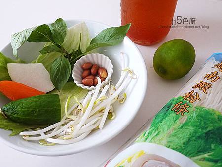 1. 材料預備備。越南米粉比台式米粉口感滑嫩兼爽口,大型超市都有賣。蔬菜洗乾淨瀝乾水。